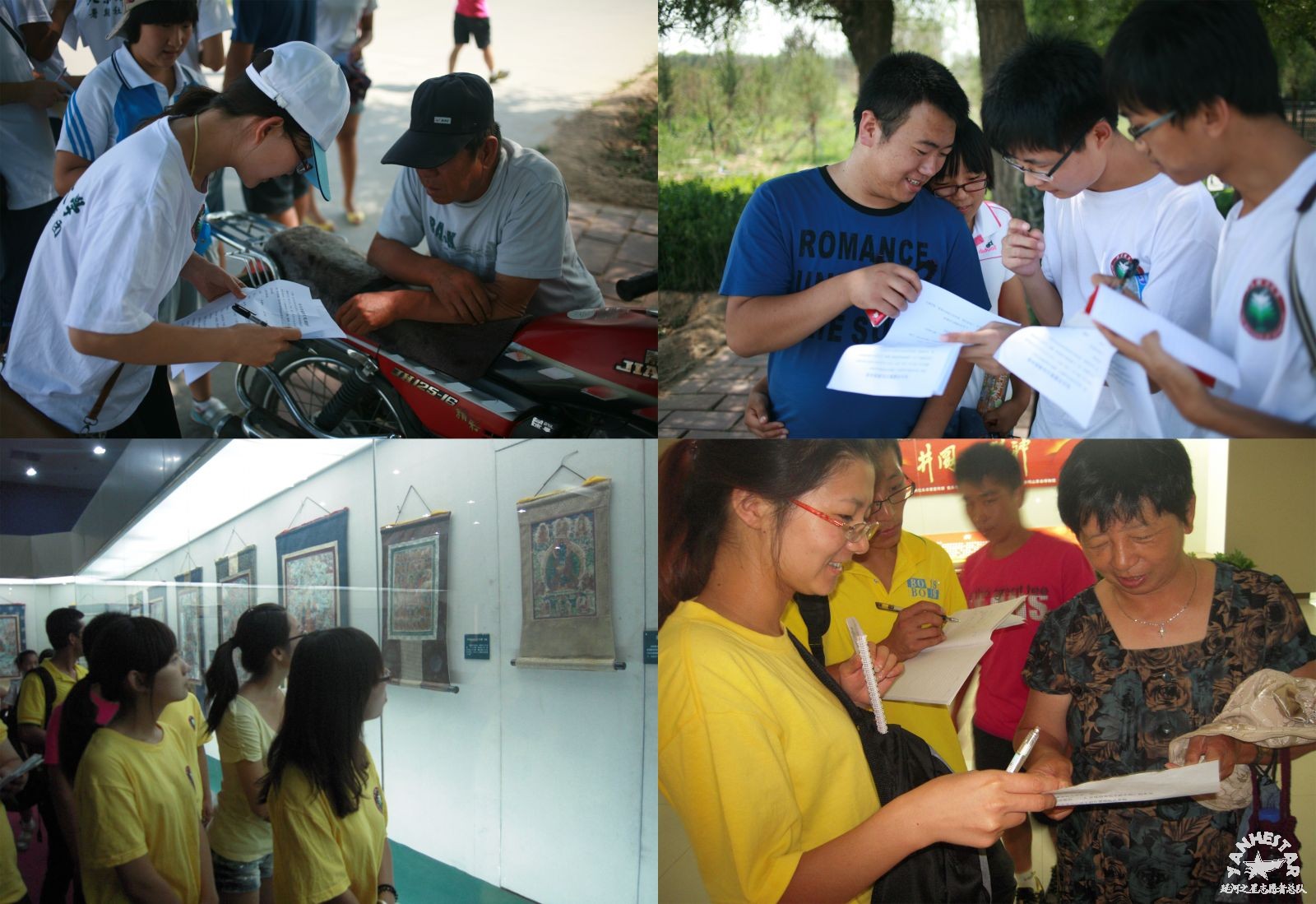 第一天,实践交流团的同学们来到包头市教育局与区教育局,通过工作人员,对包头市的教育资源分布有了大体的了解,为之后的安排提供了支持。第二天在市区调研过程中,实践交流团成员兵分三路,分别前往二十九中、四十五中和万达广场周边进行了一天的调研。大家不辞辛苦、顶着炎炎烈日耐心的向学生和家长说明此次社会实践活动的意义,请他们填写调查问卷,并询问他们有关教育观念的一些看法。经过一天的调研,队员们共完成了调查问卷将近350份。第三天的调查中,实践交流团成员分为两组,齐头并进,分别前往九原区(郊区)和萨拉齐(农村)进行调研。在九原区的调查中,正值全国中学生运动会的女篮比赛在此进行,实践交流团的成员对来往的大量学生、家长进行接触,完成调查。在萨拉齐镇,支教团的队员们挨个入户进行调查,深刻感受到当地居民民风淳朴、待人热情。这两个地区共完成了200多分调查问卷。最后一天,实践团的同学对所获得的问卷进行了进一步的分类、整理。实践交流团的调查活动圆满结束。