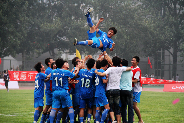 近的有在今年全国大学生足球联赛的总决赛中,北理工也曾经1:2落后于太原理工大学,在队友艰难将比分扳平之后,又是杨阳一脚漂亮的弧线球入网锁定胜利,从而使北理工又一次获得了代表中国大学生参加深圳世界大运会的资格。在北理工征战中甲联赛的五年里,这样的例子还有很多。