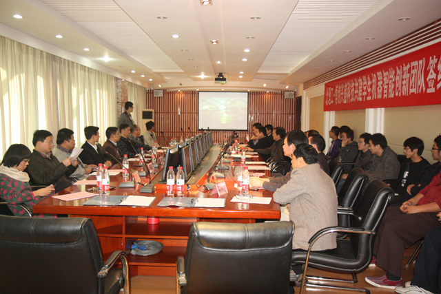 创新团队主任关正同学代表团队作创新团队的年度工作总结。2011年6月,软件学院大学生科技创新创业基地在学校教务处、校团委、软件学院的大力支持下,建立了北理工机器智能学生创新团队。创新团队是一项多学科融合的大学生科技创新平台,依靠于软件工程学科,专注于在现有的硬件平台上研究机器智能,实现机器的群体智能和自动控制,面向全校学生开放的大学生创新团队。六个月来,创新团队指导教师和同学们高度珍惜这一来之不易的机会,发扬基地“锅炉房科技创新精神”,努力拼搏,依靠大学生科技竞赛为载体,努力探索一套机器智能的人才培养模式,积累机器智能的科研基础,并取得了一系列优异的成绩,积累了很多的经验教训,迈出了重要的、有开拓性意义的一步。