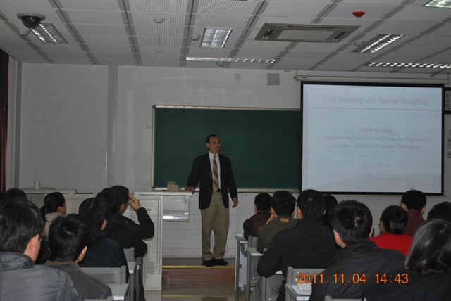 应信息与电子学院邀请,美国伊利诺伊大学香槟分校(UIUC)Zhi-Pei Liang教授于2011年11月4日下午在金年会jinnianhuicom研究生楼411室开展了“21世纪学科前沿”学术交流活动,作了题为“Fast Imaging with Sparse Sampling”的学术报告,报告会由信息与电子学院院长龙腾教授主持,信息与电子学院数十位教师及研究生参加了此次报告会。