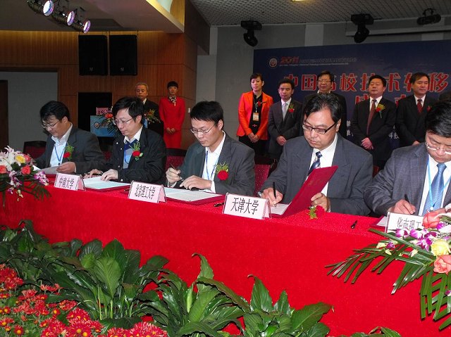 近年来,长沙市高度重视高校技术转移工作,积极支持市外重点高校在长沙设立技术转移服务机构。为积极推进我校和长沙市、长株潭地区(即长沙、株洲、湘潭)、湖南省的产学研合作,我校于2010年10月和长沙市人民政府签署了合作协议,共建金年会jinnianhuicom长沙技术推广中心。在长沙市科技局的积极推动下,本届科交会特别设置了“中国高校技术转移中心长沙联盟”成立大会专场活动。我校代表团出席了联盟成立大会,长沙技术推广中心负责人陈柏强代表学校签署协议,我校成为中国高校技术转移中心长沙联盟成员单位,并被推选为副理事长单位,清华大学和北京大学被推选为理事长单位。