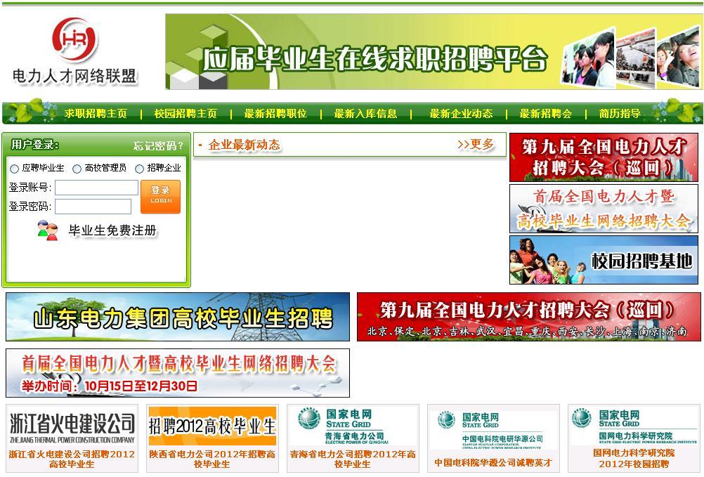 2011年9月底,我校招生就业工作处工作人员参加了“中国电力人才网络联盟校企就业信息查询系统”构建和培训工作,该系统为电力行业单位和毕业生快速便捷的互通信息、录用审核提供服务支持。日前该系统已经通过调试,正式投入使用,我校毕业生可通过学校就业网链接登录该系统进行应聘求职。