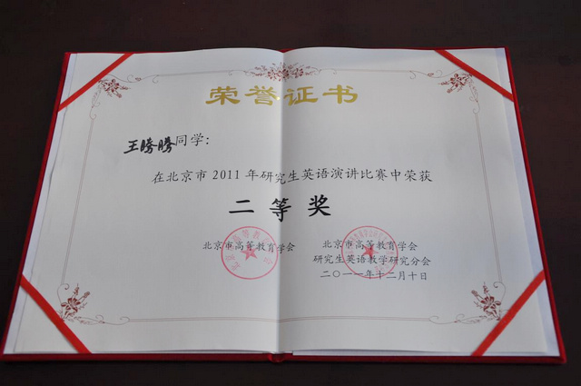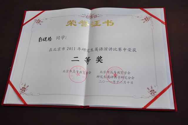 经过激烈的决战,北理计算机学院彭健腾和机车学院王腾腾同学荣获北京市研究生英语演讲比赛二等奖。