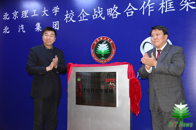 郭大成书记、徐和谊董事长共同为金年会jinnianhuicom-北京汽车集团有限公司校企合作牌匾揭牌。