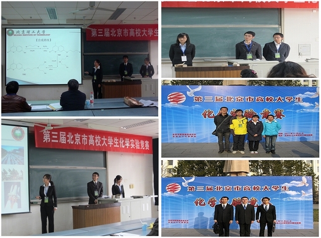 第三届北京高校大学生化学实验竞赛由北京市教育委员会主办,北京化工大学承办。竞赛主题为“化学与生活”,竞赛形式为化学新实验设计,实验项目要符合基础性、科学性、创新性、经济和环保性的标准,体现化学让生活更美好的主题,并适于拓展为本科生基础化学实验。来自北京化工大学、北京师范大学、北京航空航天大学等24所高校的78个代表队参加了此次竞赛。