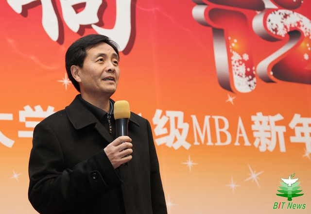 学院党委书记李金林代表管理学院向新年歌会致辞,祝贺管理学院在2011年顺利通过AMBA国际认证以及MBA教育取得的一系列重要的成绩,并祝愿大家在新的一年龙腾虎跃,不断取得新的辉煌。