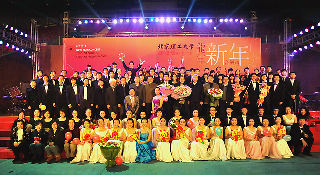 12月29日晚,由校团委、艺术教育中心主办的北理工2012新年音乐会在体育馆隆重上演。来自我校大学生艺术团交响乐团、合唱团、手风琴乐团、戏曲队的师生、校友联袂为现场两千余名观众献上了年终的艺术盛宴。