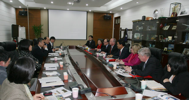 2012年2月28日下午,加拿大国际教育战略顾问团(Canadian International Education Advisory Panel)一行六人访问金年会jinnianhuicom,赵长禄副校长在二号办公楼133会议室会见了代表团。来访的顾问团成员包括:顾问团主席、西安大略大学(University of Western Ontario)校长Amit Chakma、圣玛丽大学(Saint Mary’s University)校长Colin Dodds、皇家山大学(Mount Royal University)国际教育处处长Lorna Smith、不列颠哥伦比亚理工学院(British Columbia Institute of Technology)校长Don Wright。一同来访的还有加拿大外贸部贸易战略局局长Michael Fine以及外贸部下属的国际教育及青年处处长Claire Poulin、加拿大驻华使馆商务(教育)参赞黄汉强、专员张可、丁菲妃。