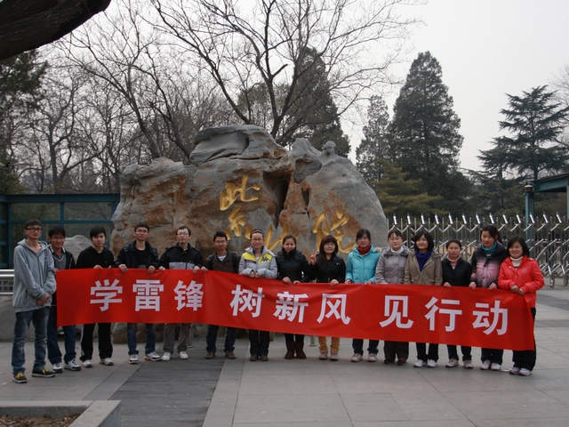 2012年3月5日是毛泽东为雷锋题词50周年纪念日,北理工化学学院应北京市学雷锋志愿活动号召于3月4号开展了”弘扬雷锋精神”的紫竹院公园志愿活动。离开雷锋的日子里,“雷锋”其实从未离我们而去,“雷锋”不是中国人精神世界里树起来的英雄,而是一代又一代共同“学”出来的榜样。“学习雷锋好榜样”,不仅仅是一句口号而已,而是要从实际出发,从你做起,从我做起,时时刻刻发扬雷锋同志艰苦奋斗、爱国爱党的优秀品质。