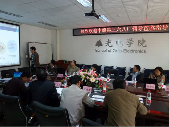 中船368厂隶属于中船重工集团公司,是舰载光电武器系统的重要生产企业,宾主双方介绍了各自单位的科研、生产方向和主要产品,就可能的合作领域进行了深入洽谈,初步确定了下一步合作目标。赵长明副院长陪同来宾参观了光电学院的部分实验室。