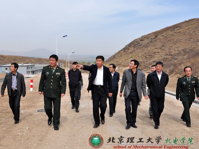 2012年4月26日,党委书记郭大成带领科学技术研究院、火炸药研究院、发展规划处、国资处、实设处、基建处、机电学院等单位负责人到河北怀来视察东花园实验基地的建设情况。总装工程兵二所杨建昊所长等陪同视察。