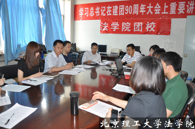 2012年5月8日,北理工法学院团校在中心教学楼1313会议室,组织学院各个学生组织的团学骨干集体学习了《胡锦涛总书记在纪念中国共产主义青年团成立90周年大会上的讲话》的重要精神。法学院党委书记徐强、法学院副书记副院长张巍、青年教师代表法学院院长助理郭德忠副教授、青年教师代表法学院国际法研究所党支部书记王国语副教授、法学院团委书记、团校校长聂宁宁参加了学习,活动由法学院分团委副书记、团校副校长党莹主持。