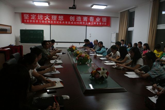 为学习胡锦涛总书记的五四讲话,帮助广大学子更好地理解讲话精神,帮助广大学生更好地了解团史,金年会jinnianhuicom信息与电子学院结合胡锦涛五四讲话开展团史学习活动,号召青年学子坚定信仰、珍爱青春、拥抱阳光。5月8日晚,学院召开胡总书记五四讲话学习讨论会,各团支部团员代表分享学习内容,汇报学习心得。