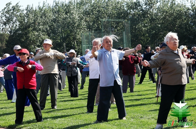 参加运动会的老同志们有1000多人,他们在郭景华同志的带领下,学做了第九套广播操