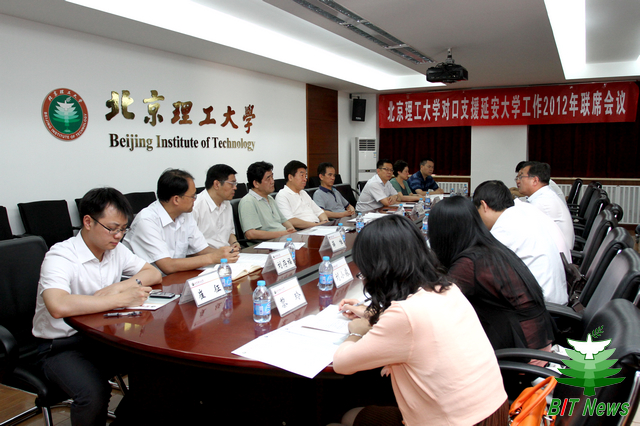 会上,双方就目前对口支援工作的进展和下一阶段的工作设想展开了深入交流。去年12月,北理工荣获“对口支援西部高校典型经验集体”称号,学校办公室主任郝志强代表学校出席典型经验集体授牌仪式,这是对我校对口支援工作的肯定和鼓励。此次联席会议的召开,为下一阶段对口支援延安大学工作向更深入的层次推进打下了良好基础。延安大学校长办公室主任姚正宽,省部共建办公室主任马社举,教务处处长武仲远,研究生学院院长杨亮才,党委办公室副主任、驻京办主任强伟,人事处副处长刘小淼,省部共建办公室秘书崔林立,校友办干事黎玲,我校学校办公室主任郝志强,研究生院常务副院长薛唯,校友会办公室主任段丽萍,学校办公室副主任刘存福,教务处副处长林海,学校办公室政研室主任崔征参加了会议。