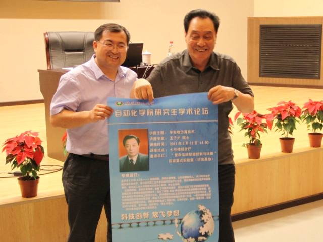 自动化学院院长付梦印教授代表全院师生对王子才院士带来精彩的学术报告表示感谢,随后,付梦印院长向王子才院士赠送海报,以示留念。