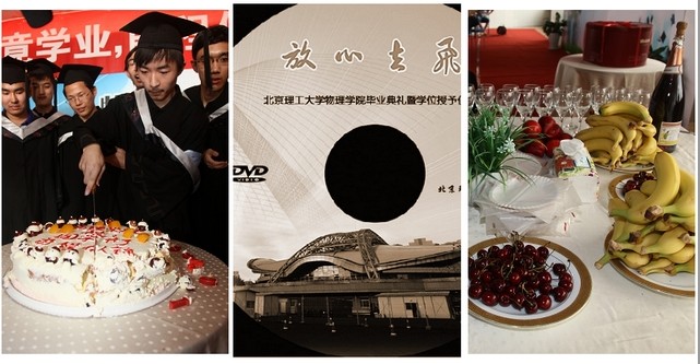 恰好当天过生日的杨晨同学主刀切开毕业蛋糕,象征着25位毕业生为未来的生活剪彩。学院还将2008级学生德育答辩和毕业典礼制作成DVD光盘赠送给毕业生,为不能到场参加毕业典礼的亲友弥补遗憾,也作为物理学院送给毕业生的礼物,送去对毕业生真挚的祝福。