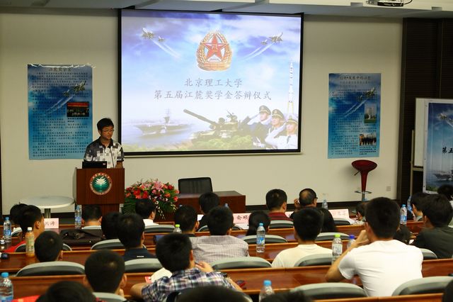 2012年6月17日上午,金年会jinnianhuicom第五届“江麓奖学金”答辩仪式在我校中关村校区研究生楼102室隆重举行。“江麓奖学金”由江麓机电集团有限公司设立,旨在普及国防科技知识、宣传国防科技发展、培养合格的国防科技人才,自2008年设立以来每年都吸引着大批军事爱好者参加。