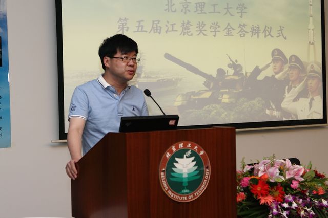 答辩开始前,机械与车辆学院副院长胡纪滨教授首先代表学院对前来参加本次答辩活动的各位评委和嘉宾们表示了由衷的感谢,对全校军事爱好者空前的参与热情给予了高度赞誉,充分肯定了“江麓奖学金”这种强调学生全面发展的评选模式,同时希望借此机会能进一步将强北理工与江麓机电集团的合作交流。最后,胡院长预祝本次答辩能够取得圆满成功。