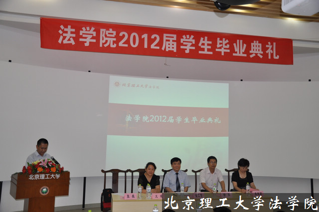 到场的领导和嘉宾有: 法学院院长曲三强、党委书记徐强、副院长张艳丽、副书记副院长张巍、法学院优秀毕业校友房山区司法局副局长王媛,法学院团委书记聂宁宁以及法学院的教师代表和全体2012届本科生、法律硕士研究生,会议由副书记副院长张巍主持。
