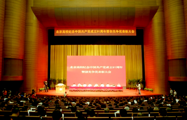 6月25日下午,北京市委教育工委在清华大学新清华学堂隆重举行表彰大会,交流总结北京高校创先争优活动经验,并对100个创先争优先进基层党组织和100名创先争优优秀共产党员给予表彰。会议由副市长洪峰主持,市委常委、教工委书记赵凤桐参加并做重要讲话。会议要求,各高校要以保持和发展党的先进性和纯洁性为重点,不断提高党建工作科学化水平;要建立健全长效机制,深入推进创先争优常态化;立足新的起点,以创先争优的良好态势,奋发向上、锐意进取、扎实工作,自觉落实加强党的建设各项任务。