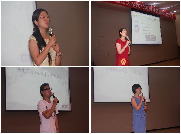 在排名赛环节,每位辅导员根据给定情景,在规定的时间内作一段即兴演讲或动员,其流利的表达、清晰的思路、深刻的解析赢得了在场领导及观众的阵阵掌声;实力比拼题部分,辅导员选定在大屏幕上快速滚动播放的所辖学生,对应照片说出其基本信息,充分展现了每名辅导员对学生信息掌握的熟练性、准确性。