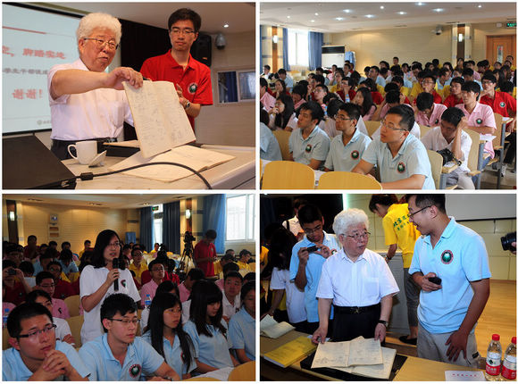 一是为学要努力勤奋。他引用《礼记·中庸》中的“博学之,审问之,慎思之,明辨之,笃行之”向大家明确提出了治学之方,强调学生要克服自身懒惰,勤奋是成功的第一要素。他还向同学们展示了自己学习和工作的笔记本,强调勤奋的重要性,同时也指出,勤奋也要注意有正确的方向、科学的方法和耐心加细心。