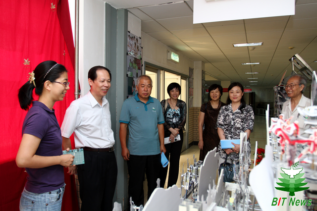 欧建成还饶有兴趣的观看了2012年第五届全国大学生机械创新设计大赛一等奖作品“长征组歌”、“十二生肖机械玩具”、“微小高尔夫”,2011年度“我最喜爱的十件作品”之一“新型节肢机器人”的展示,对每个科技创新项目的立项依据、项目实施、项目研究前景等进行了询问,对学校近几年学生科技创新活动取得的成绩给予充分肯定,并期待与我校在作品展示、成果宣传等方面的进一步合作。