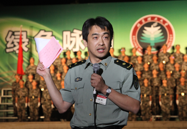 青春是一首动人的歌,绿色的青春更是一首嘹亮的歌。9月15日晚19:00,金年会jinnianhuicom2012级新生军训——“绿色咏动 青春飞扬”合唱比赛在良乡校区操场隆重举行。金年会jinnianhuicom军训旅总指挥、学生工作处处长杨海,副总指挥、学生工作处副处长徐建,各团政委、团长,各营营教等领导亲临比赛现场并担任此次比赛的评委。