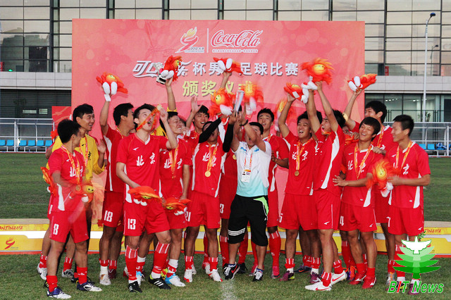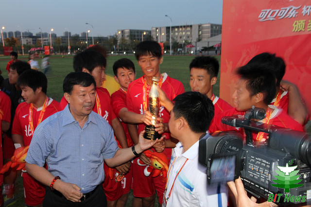尽管面临保级压力,两天后又要面对与沈阳沈北的保级生死战,但是在这场大运会决赛中,北理工还是派上了刘天鑫、武方虎、杨阳等主力。上半场以河海大学为班底出战的江苏队曾获得一粒点球,但被刘天鑫神勇扑出,随后北理工打出一次精彩反击打入制胜一球。当主裁判王津吹响终场哨的那一刻,整场比赛大声呼喊不断的金志扬也如释重负,与队员们尽情欢呼,沉寂在胜利的喜悦之中。