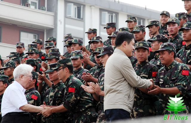典礼结束后,胡海岩、赵平、李和章、周立伟、姚利民分别与承训部队教官、军训旅带队干部亲切握手,向他们表示了感谢,并与所有带队教官和干部合影留念。
