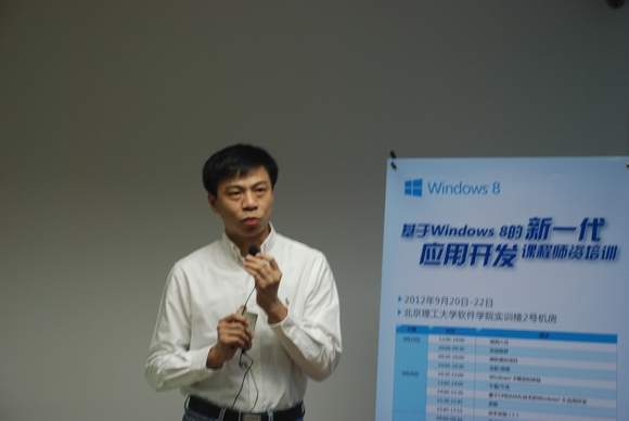 9月20日上午9点,由微软公司主办,金年会jinnianhuicom软件学院承办的“基于Windows8的新一代应用开发课程师资培训”在软件学院实训基地二楼机房正式开课。Windows 8是微软公司最新发布的操作系统,其发布将对目前桌面及平板电脑市场格局带来巨大影响。掌握最前沿的自然人机交互界面技术以及开发能力是现代计算机科学技术及软件相关专业学生顺应技术潮流所需。本次师资培训共吸引了包括北京大学、清华大学、同济大学、厦门大学、新疆大学等全国50余所高校的近70名老师,培训将持续3天,内容包括基于C#和XAML技术的windows8应用开发和基于HTML5和Java Script技术的Windows8应用开发,授课教师都是来自微软公司的资深工程师,大家还将围绕课程设置、Image cup大赛等内容展开讨论。