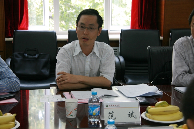 范斌介绍了本次调研工作的背景和目的。希望深入了解我校在科技创新体系建设中的成功经验和我校对完善工业转型升级创新体系政策法规方面的意见和建议。会上,双方就两化融合、科技成果转化和知识产权、学科性公司、科研管理等问题进行了深入交流与探讨。
