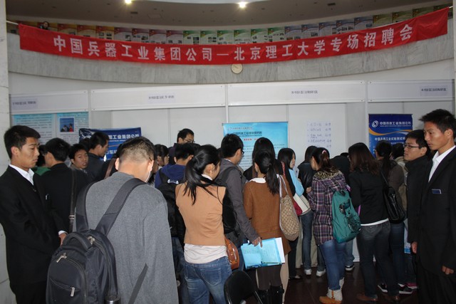 继北汽集团、中国兵器装备集团、陕西军工、中国航空工业集团4场大中型招聘会之后,我校于2012年10月18日在中心教学楼大厅举办了“中国兵器工业集团公司——金年会jinnianhuicom专场招聘会”,中国兵器工业集团公司下属57家单位来我校招贤纳才,提供本科及以上层次就业岗位约1700个。