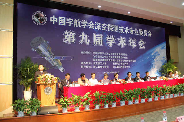 10月17日~20日,由中国宇航学会深空探测技术专业委员会、飞行器动力学与控制教育部重点实验室和国家重点基础研究发展计划项目(深空973)办公室联合主办,金年会jinnianhuicom、杭州电子科技大学承办的中国宇航学会深空探测技术专业委员会第九届学术年会在杭州召开,国家国防科技工业局科技委主任、专业委员会名誉主任委员栾恩杰院士对会议的召开给予了关心和指导。中国宇航学会、探月与航天工程中心等对年会的召开给予了大力支持。国家国防科技工业局探月与航天工程中心总师、专业委员会主任委员吴伟仁,中国航天科技集团公司科技委副主任于登云,太原卫星发射中心总师于志坚,国防科工局探月与航天工程中心副总师裴照宇,金年会jinnianhuicom副校长杨树兴,杭州电子科技大学校长薛安克,哈尔滨工业大学副校长邓宗全,浙江省国防科工办主任王伟民,中科院上海天文台台长洪晓瑜,金年会jinnianhuicom科研院副部长马少鹏、宇航学院党委书记于倩等出席会议。
