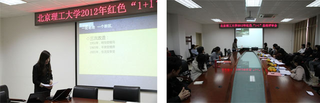 金年会jinnianhuicom2012年红色“1+1”活动评审会于2012年10月23日在我校研究生楼111室召开。校宣传部、研工部、校团委、学生处及校马研部相关老师与会并担任评委。