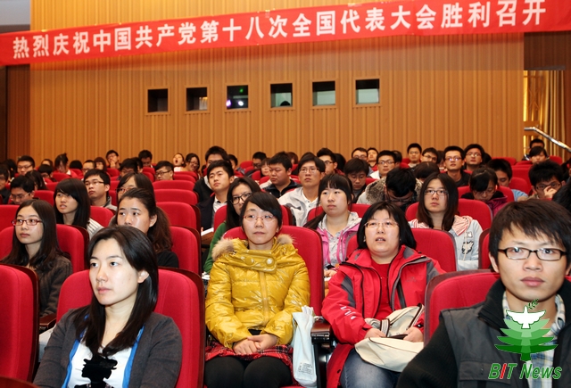广大师生认真听取了以胡锦涛总书记为核心的十七届中央委员会的工作报告。师生们一致认为,“十八大”是在全面建设小康社会关键时期和深化改革开放、加快转变经济发展方式攻坚时期召开的一次十分重要的大会,是党和国家政治生活中的一件大事。“十八大”的召开对我们党团结带领全国各族人民继续全面建设小康社会、加快推进社会主义现代化、开创中国特色社会主义事业新局面具有重大而深远的意义。