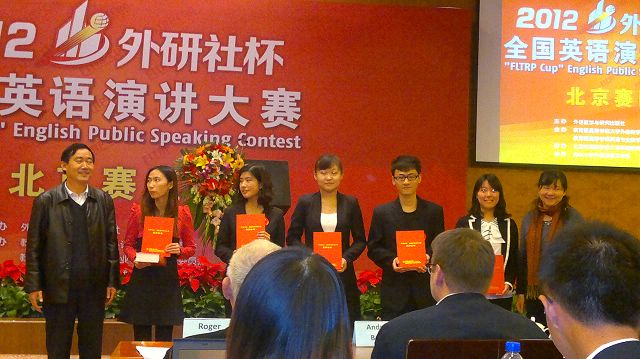 2012年11月4日,2012 “外研社杯”全国英语演讲大赛北京市复赛在清华大学隆重举行。我校外国语学院英语系2011级吴桐同学在指导老师刘露的带领下荣获二等奖佳绩。
