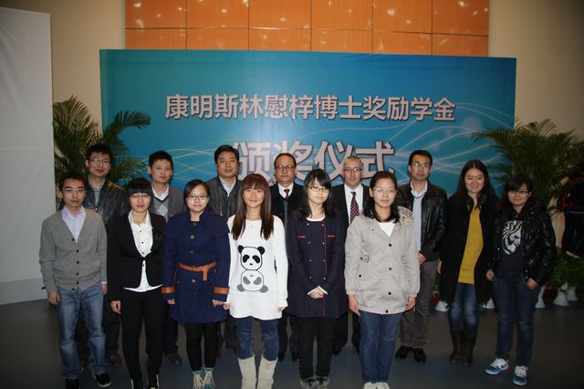 会后,福田康明斯发动机有限公司相关人员与获奖学生进行合影。至此,2012年度金年会jinnianhuicom康明斯林慰梓博士奖励学金颁奖仪式圆满落幕。