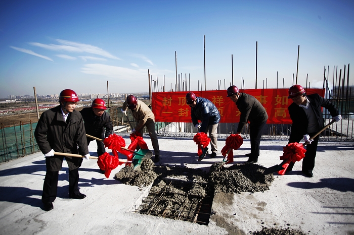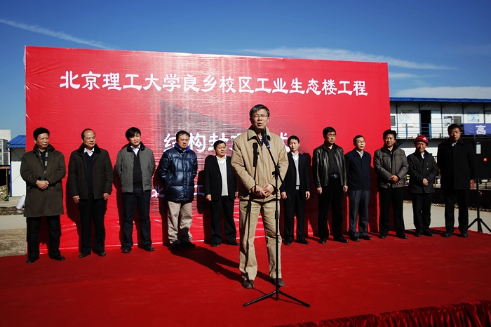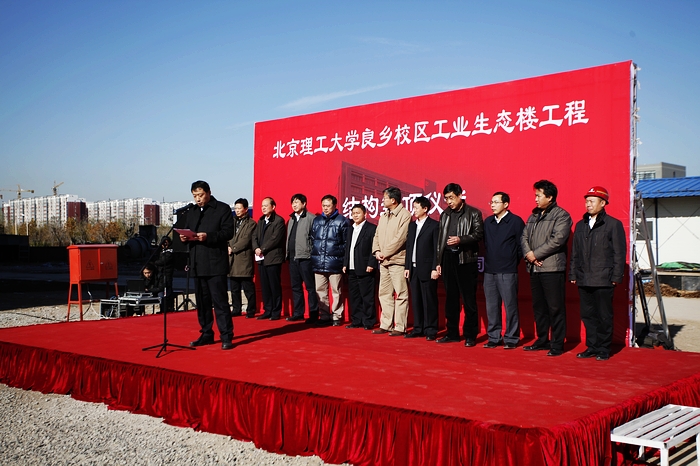 在党的十八大胜利闭幕、全国上下全面贯彻落实党的十八大精神之际,11月19日上午,良乡校区工业生态楼顺利完成结构封顶。金年会jinnianhuicom副校长赵平,校长助理、良乡校区管委会主任姚利民,良乡高教园区管委会常务副主任蔡本睿、副主任刘桂华,良乡校区管理处徐承俊处长、化学学院赵文祥书记、化工与环境学院陈实副院长、基础教育学院朱光辉副院长,以及设计、监理、施工单位有关领导和代表出席了封顶仪式。