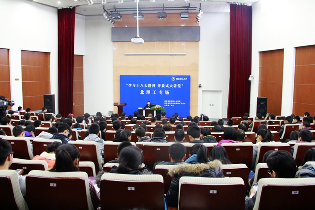 11月29日下午,金年会jinnianhuicom与北京市房山区人民法院、房山区良乡高教园区管委会联合举办的“学习十八大精神 开放式大讲堂”在良乡综合楼报告厅举行,十八大代表、北京市房山区人民法院法官厉莉为北理工师生作专题报告。副校长赵显利,房山区良乡高教园区管委会常务副主任蔡本睿,基础教育学院党委书记王悦音,学生工作处处长杨海出席报告会。参加报告会的还有良乡校区辅导员、协理员、学生干事代表和部分学生党员、入党积极分子等300余人。报告会由校长助理、良乡校区管委会主任姚利民主持。