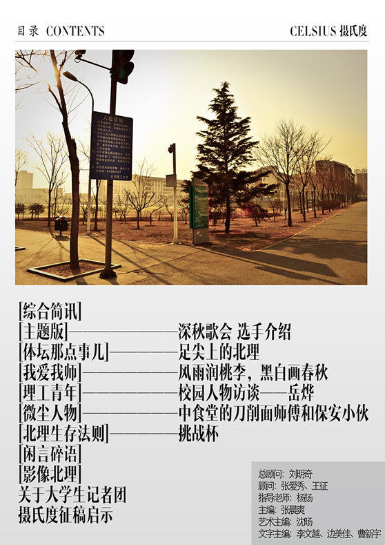 忽如一夜春风来,千树万树梨花开。在这个雪花飘飞的季节,北理工大学生记者团主办的电子杂志《摄氏度》终于和大家见面了!