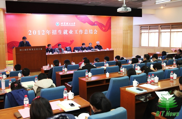 赵显利作了题为《夯实基础、提高质量,推进招生就业工作科学发展》的报告。他首先对学校2012年招生就业工作情况进行了总结:2012年我校招生和就业工作都取得了可喜成绩。在招生方面: 2012年学校共招收各类本科新生3799人。在全国31个省份中有21个省份理工类、20个省份文史类最低分与一本线分差刷新近五年最好成绩;在已面向社会公开录取最低分(或投档分)的23个省份中,19个省份进入全国高校前20强,21个省份进入“985工程”高校前15强,22个省份进入以工科为主高校前10强。在就业方面:2012年学校共有各类毕业生6284人。在全国宏观就业形势严峻的情况下,取得了全员初次就业率97.85%的可喜成绩。其中:本科生就业率为97.25%;研究生就业率为98.56%;高职生就业率为97.41%,就业率指标稳居全国重点高校前列。我校“易创计划·大学生创业人培养工程”还入选北京市教委“就业特色项目”。
