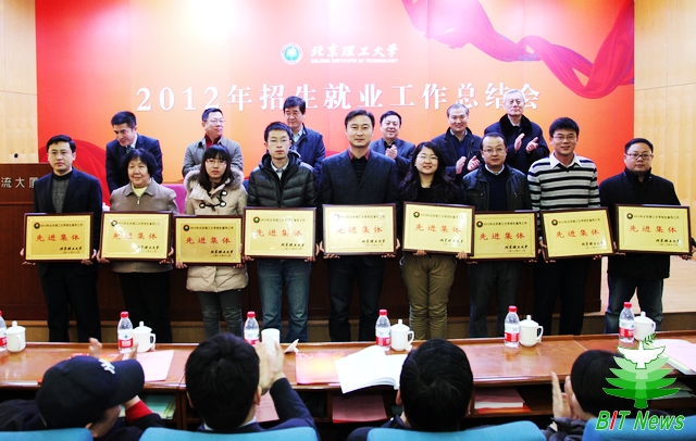 会上表彰了2012年招生宣传先进集体8个,招生宣传先进个人16人;2012年就业工作先进集体9个,就业工作先进个人16人。与会领导分别为先进集体和先进个人颁发了奖牌和证书。