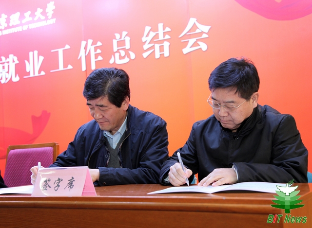 会上,赵显利代表学校与学院代表、机械与车辆学院党委书记阎艳、人文社会科学学院党委书记张红峻签订了《金年会jinnianhuicom2013年就业工作目标责任书》。