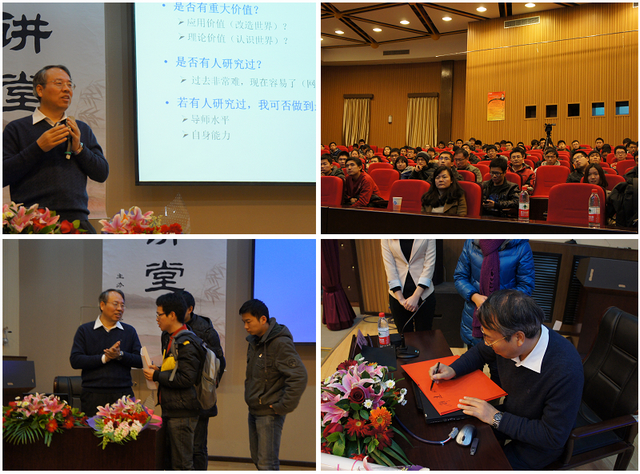在谈到如何做学问时,院士引用自己在研究气泡现象时领悟到的道理,说“对人要大气,做学问要小气。”做学问要细心、认真、不放过任何微弱的东西。此外,院士还反复强调持之以恒的重要性,“板凳要坐十年冷,文章不著一字空”,拥有超人的毅力,才能在科技研究领域做出超出常人的成绩。