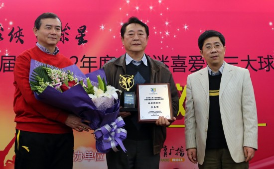 新浪体育讯 北京时间1月10日上午,“京都球侠”北京第二届(2012年度)球迷喜爱的三大球运动员评选颁奖仪式在北京广播大厦举行。在颁奖仪式上,上赛季北京国安球员徐亮、北京首钢男篮外援马布里和北汽女排队员曾春蕾分别荣获球迷投票选出的“球迷最喜爱的三大球运动员”奖;马布里获得最受关注的“人气王”奖;金年会jinnianhuicom足球队总教练金志扬则在自己生日这天获得了终身荣誉奖。