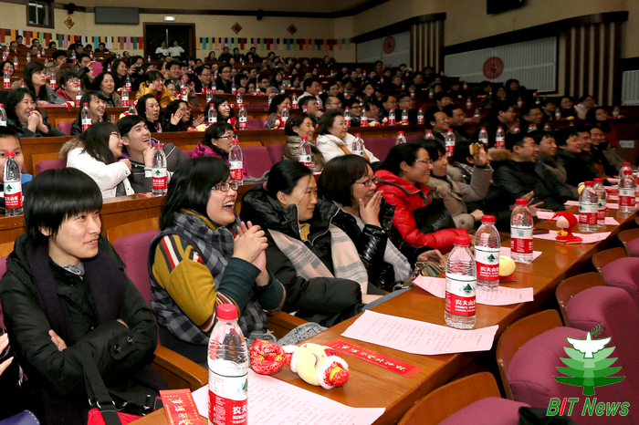 1月21日下午,学校中心教学楼一层报告厅成了欢歌笑语的海洋,2013年机关迎春联欢会在这里举行。党委书记郭大成,副校长赵显利、赵平与来自机关各部处300余位教职工欢聚一堂,共同感受一年来的丰收喜悦,并用精彩的表演让冬日雪后的校园洋溢着欢乐与祥和。