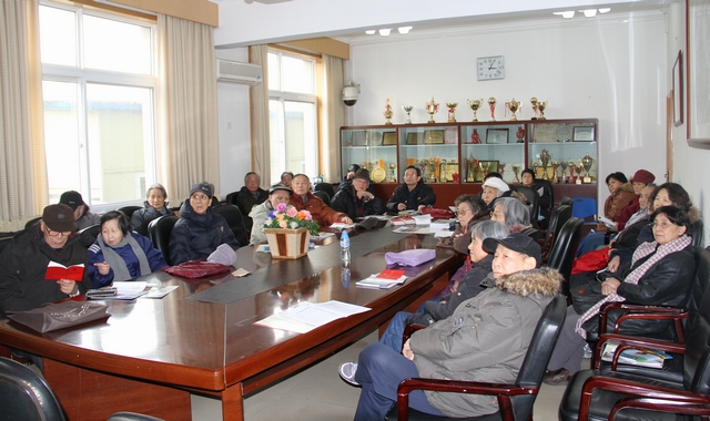 离休四支部把召开“学习党的十八大报告座谈会”作为一次主题党日活动,支部离休党员们不惧严寒有17名离休干部党员到会。支部书记赵峰明主持座谈,他要求支部党员要精读原文,进一步准确领会十八大精神,把十八大精神的学习作为长期的任务。原人文学院教授单书岩老师说:“报告内容丰富,值得一读,要好好读,认真读!读后提高了认识、开阔了眼界。”单老师在座谈会上做了“从三个‘总’看十八大报告”的专题发言,详细解读了自己学习十八大报告的心得体会。