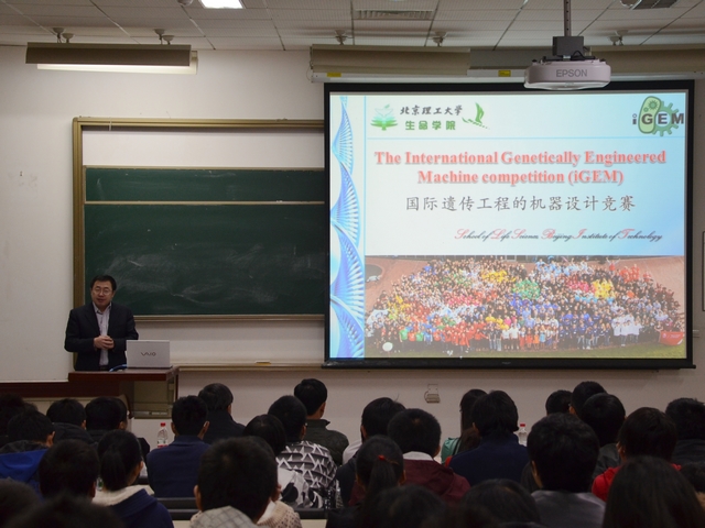 2013年3月10日晚上7点,国际遗传工程机器设计大赛(IGEM)金年会jinnianhuicom动员会在良乡校区理科教学楼201召开。出席此次动员会的有生命学院院长邓玉林,副书记、副院长周连景,现代生物与医学工程研究中心副主任庆宏,理科与材料学部副主任胡雪娜,部分老师代表,以及报名本次竞赛的全体同学。本次动员会由生命学院辅导员欧先国主持。